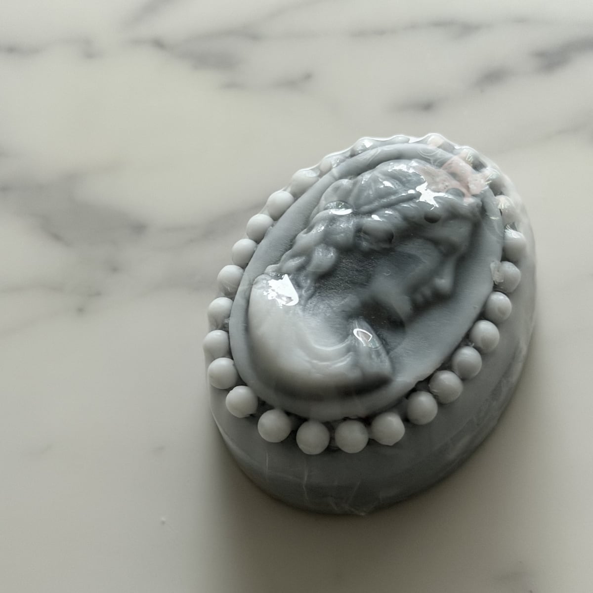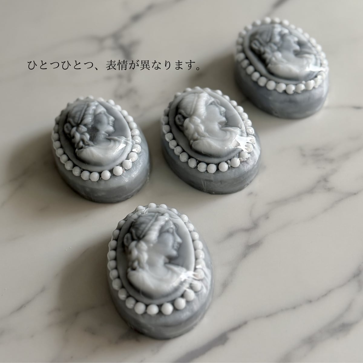 この石鹸は、装身具であるカメオを模して一点ずつ作られています。