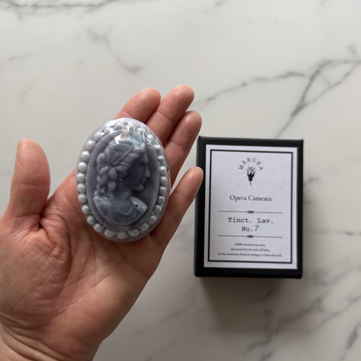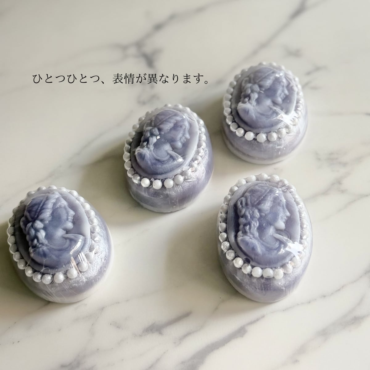 この石鹸は、装身具であるカメオを模して一点ずつ作られています。