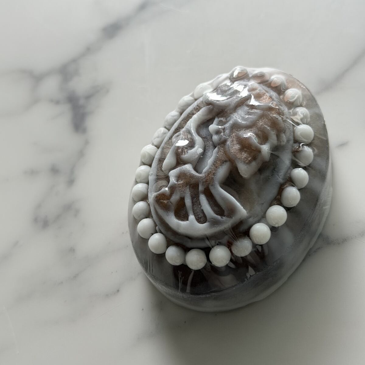 この石鹸は、装身具であるカメオを模して一点ずつ作られています。