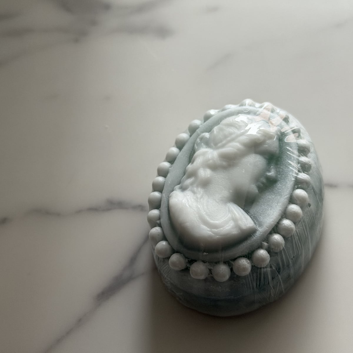 この石鹸は、装身具であるカメオを模して一点ずつ作られています。